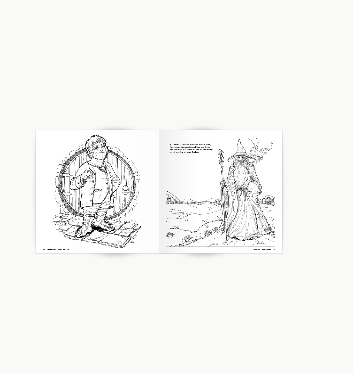 Tolkien colouring book cover and page layout designs.