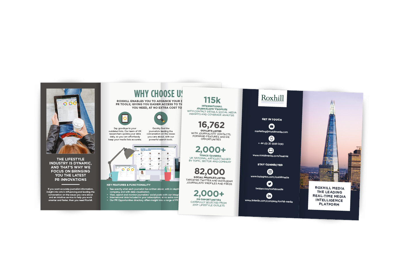 Roxhill Media are an intelligence platform management company based in London. We redesigned their branding whilst incorporating the existing Roxhill logo.