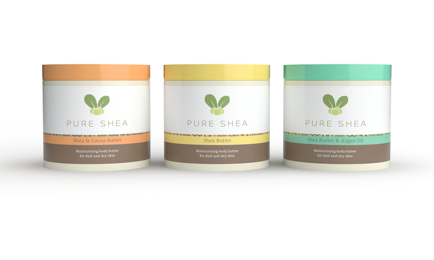 Pure Shea Moisture manufacture body butters using raw shea butter and natural oils. We were heavily influenced by Ghanaian heritage and the simplicity of the product when creating this brand